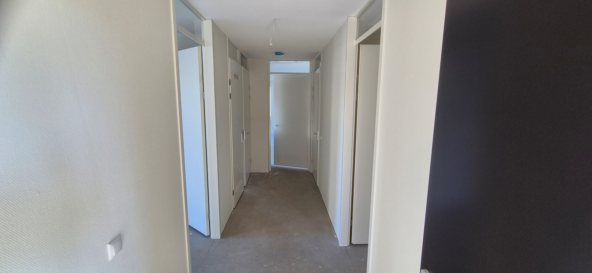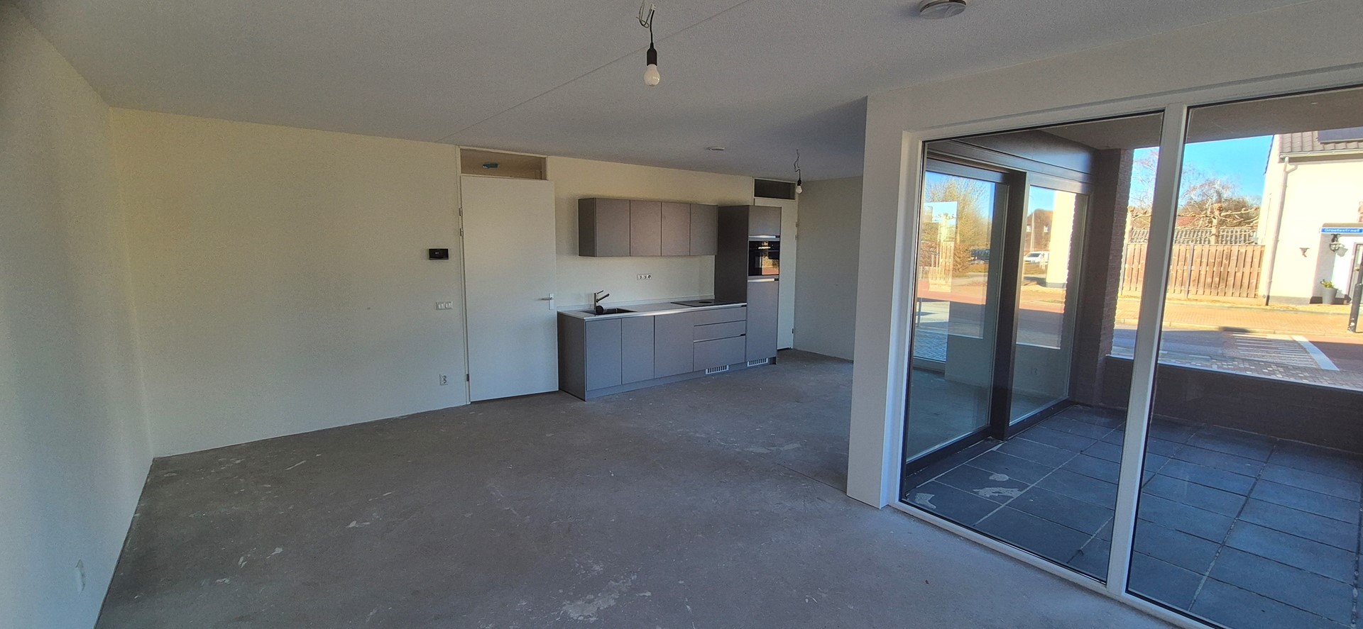 De voordeur onder de galerij geef toegang tot het appartement. Vanuit de hal zijn alle ruimtes in het appartement bereikbaar. De fraaie woonkamer is ruim van opzet, heeft veel lichtinval en middels een schuifpui is er toegang tot het overdekt terras. De open keuken beschikt over een moderne keukenopstelling met apparatuur (Bora inductiekookplaat met afzuiging, combimagnetron, koelkast met vriesvak, vaatwasser) en voldoende werk- en kastruimte. Naast de keuken bevindt zich de berging met witgoedaansluitingen, de warmtepomp en de WTW unit.