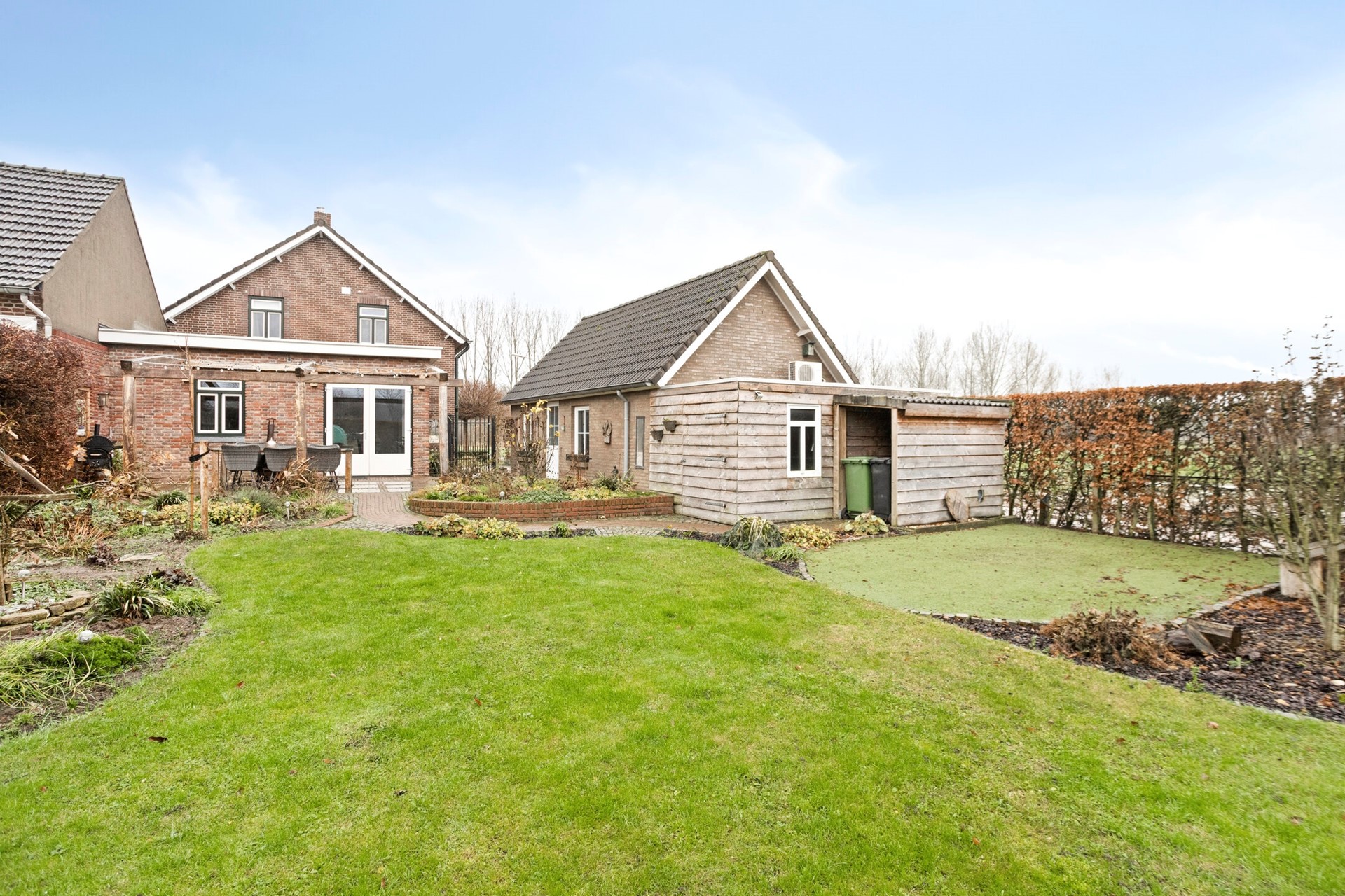 De garage (ca. 35 m²) is voorzien van een elektrisch bedienbare poort, een loopdeur naar de tuin, elektra en beschikt over een handige vliering. Achter de garage bevindt zich nog een berging van ca. 12 m². De op het zuidwesten georiënteerde achtertuin is voorzien van een terras, gazon en borders met beplanting. De tuin is achterom bereikbaar via een poort, is geheel omheind en biedt voldoende privacy.