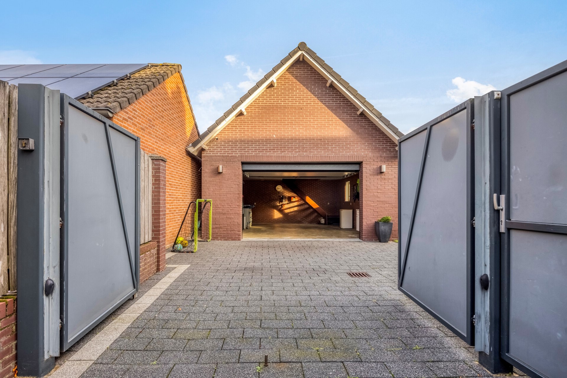 De woning is gelegen op een fijn perceel. De oprit is voorzien van een elektrisch bedienbare poort en geeft toegang tot de garage en de achtertuin. De vrijstaande stenen garage van ca. 40 m² begane grond en 20 m² zolder is voorzien van een elektrisch bedienbare sectionaalpoort, een loopdeur, elektra- en wateraansluiting biedt voldoende plek voor opslag, werk- of hobbyruimte.