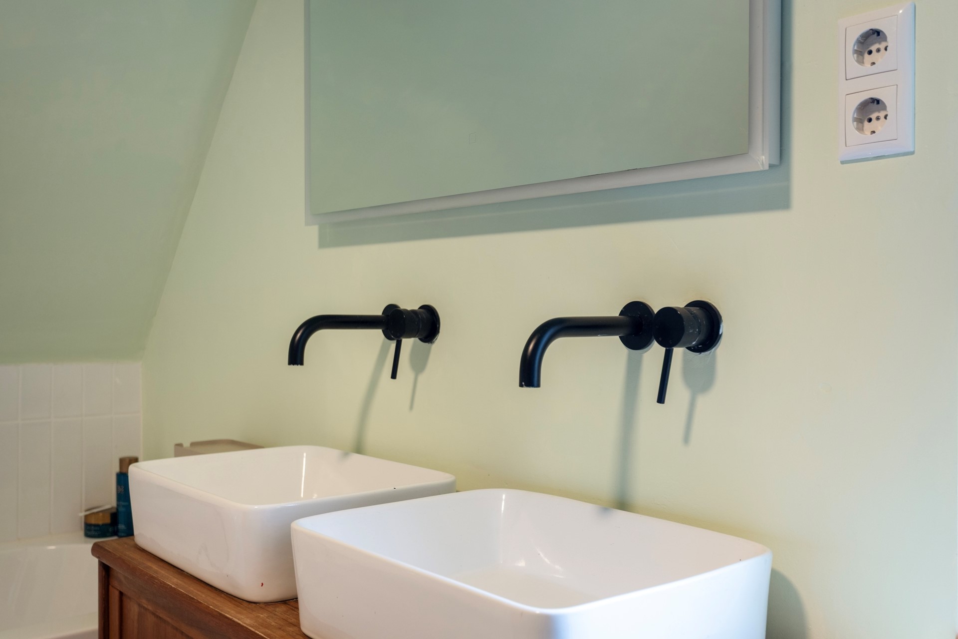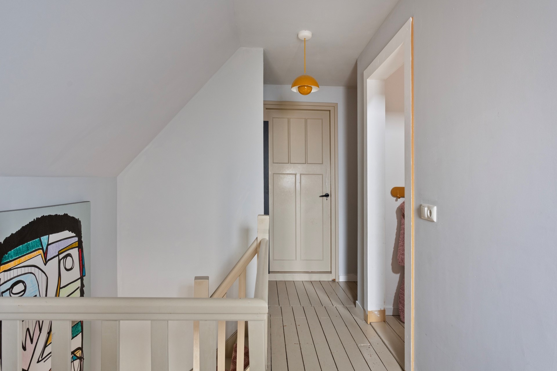 Op de eerste verdieping bevinden zich de fraaie overloop, 2 slaapkamers en de moderne badkamer. De overloop en slaapkamers zijn afgewerkt met een plankenvloer en de slaapkamers zijn respectievelijk circa 12 en 11 m² groot. De moderne en complete badkamer (ca. 8 m²) is voorzien van een ligbad, grote inloopdouche, badkamermeubel met twee wastafels, wandcloset en een designradiator.