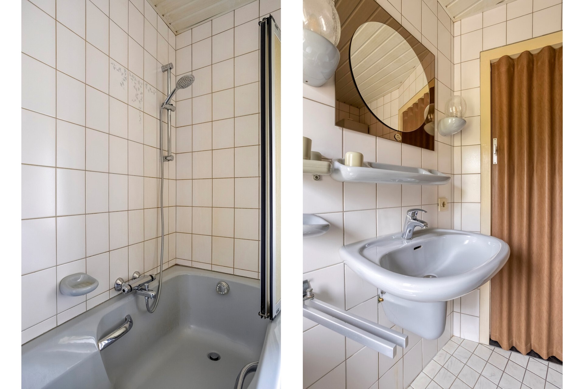 Op de verdieping bevinden zich de overloop, 3 slaapkamers en de badkamer. De slaapkamers zijn respectievelijk ca. 13, 11 en 5 m² groot en de twee grootste slaapkamers zijn beide voorzien van een muurkast. De badkamer is voorzien van een ligbad/-douchecombinatie, een toilet en een wastafel.